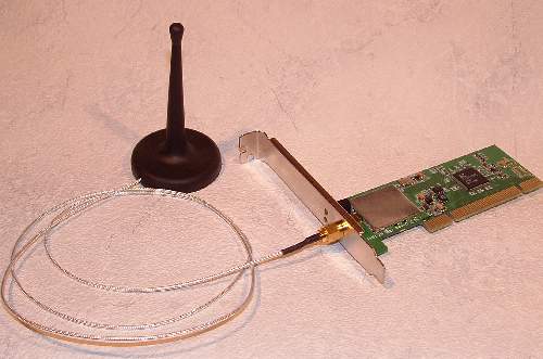Een draadloos netwerk kaart in PCI uitvoering voor gebruik in desktop computers..